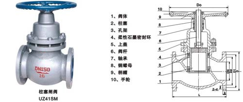 柱塞閘閥是由閥體、閥蓋、閥桿、柱塞、導向套、密封環、手輪等零件組成 (如圖)。當手輪旋轉時,通過閥桿帶動柱塞在導向套中上、下往復運動,使柱塞端部斜錐面與閥座面完成閥門的開啟與關閉功能。