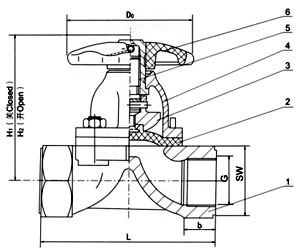 部件列表:1.閥體 2.隔膜 3.閥瓣 4.閥桿 5.閥蓋 6、手輪