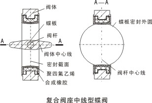密封結構采用聚四氟乙烯、合成橡膠構成復合閥座、其特點在于閥的彈性仍由合成橡膠提供并利用聚四氟乙烯的摩擦系數(shù)低、不易磨損、不易老化等特性,從而使蝶閥的壽命得以提高。