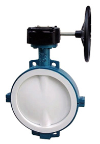 1.其基本類型有兩種,即D71F4和D71F46(中線)全襯里型對夾式蝶閥,采用對分兩片閥體組合,閥座與閥體內襯一體化,閥門工作時,只有全塑閥座與襯塑蝶板與介質接觸,產品可承受“除熔融堿金屬和元素氟”外的任何介質腐蝕,其中D71F46閥桿與蝶板(鍛)為一體,表面均勻包覆一層FEP。閥體通道內表面光滑,流體阻力小,CV值高,流通能力強,扭矩適中,采用四級密封結構并在密封面外配以耐溫抗老化的SI橡膠的彈性襯墊閥座,完全達到介質的零泄漏。