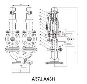 A38Y-16C/25/40、A43H-16C/25/40、A37H-16C/25/40雙聯彈簧式安全閥