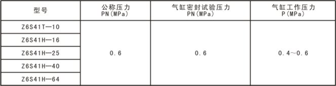 注: Z6S41T一10、Z6S41H一16、Z6S41H一25、Z6S41H一40、Z6S41H一64閘閥的氣缸單程耗氣量(以壓縮空氣體積計算)
