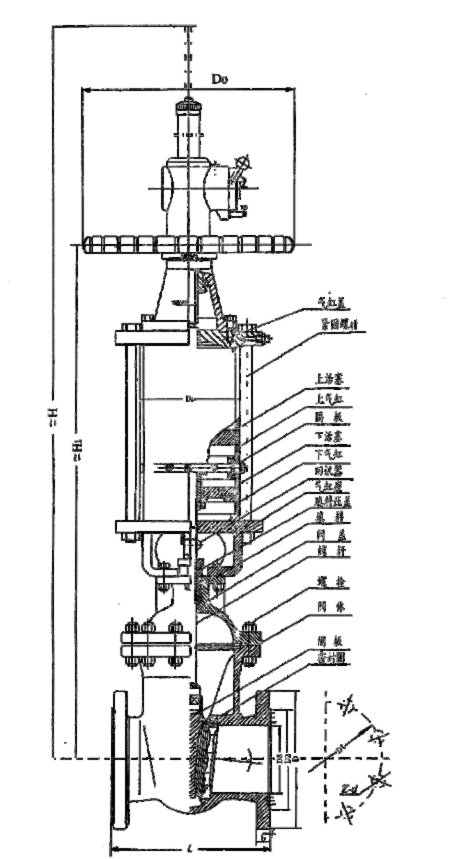 氣動帶手動楔式閘閥結構、材料及使用說明