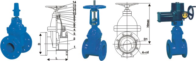 RVXX表示非明桿式閘閥,RVXP表示附省力裝置 RRXX表示明桿式閘閥 RRHX表示明桿式附手輪 RREX表示明桿式附電動操作裝置 RVCX表示非明桿式附轉動帽 RVHX表示非明桿式附手帽 RVHS表示非明桿式附信號顯示器 RVEX表示非明桿式附電動操作裝置 RVCH表示非明桿式附傳動帽臥式操作裝置 RVHH表示非明桿式附手輪臥式操作裝置 PN22級另訂制