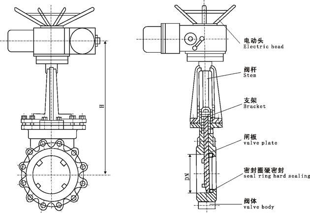1、刀形漿閘閥按照口徑不同制成暗桿和明桿兩種形式(暗桿DN50~900mm,明桿DN50~900mm),全圓形的直流通道設計不存渣、不卡阻。刀板底端加工成刀刃狀,對松軟物料如纖維、紙漿、木漿具有切斷功能,同時有良好開啟和關閉作用。在刀板上端安裝有硬聚四氟乙烯刮泥器,可防止粉塵、砂礫等擦傷性物質進入填料盒,可顯著提高刀板壽命。閥板材質選用不銹鋼、精磨拋光處理可獲得最佳密封效果。設計緊湊、占據空間小、重量輕、價格便宜、易于安裝、耐磨防堵措施完善、便于維修、使用方便及壽命長,并且可任意選用驅動裝置。