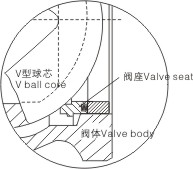 V型球閥采用帶彈簧或板簧加載閥座結構,由于彈簧/板簧的彈性恢復力推動閥座,可使球芯與閥座之間長期具有良好的密封性能。同時由于閥座采用彈簧加載的活動結構,可使閥座自動校正,以達到與球芯的最佳吻合。