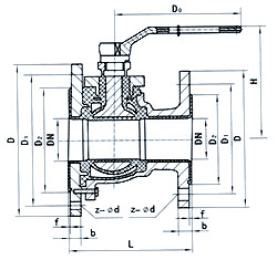 襯氟放料球閥、L值為企業標準,左法蘭比右法蘭大一檔,D1與反應釜連接,分子為右法蘭尺寸,分母為左法蘭JB78尺寸,配反應釜50L-5000L。