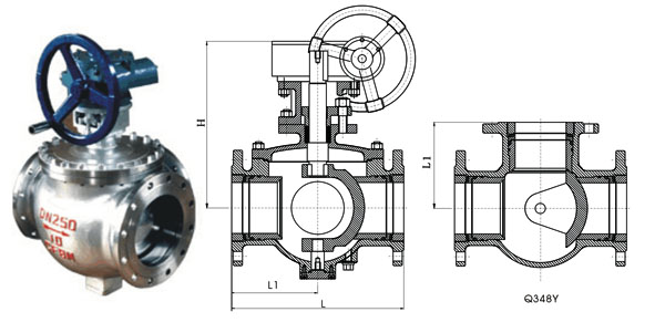 半球三通硬密封球閥的外形尺寸 PN10-40