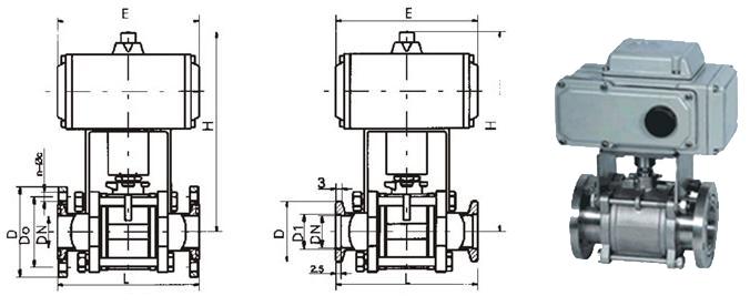 原理:采用電動執行器驅動閥桿轉 90º達到開關目的。