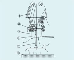 將油罐頂呼吸閥①如圖示,下同取下,然后將擋板②折疊從接合管 ③送入罐 ④內(nèi)展平,而后將固定板盤置于接合管法蘭的中心位置,把靜電接地線 ⑤墊圈壓在呼吸閥連接螺栓下方,然后將呼吸閥重新安裝好即可。
